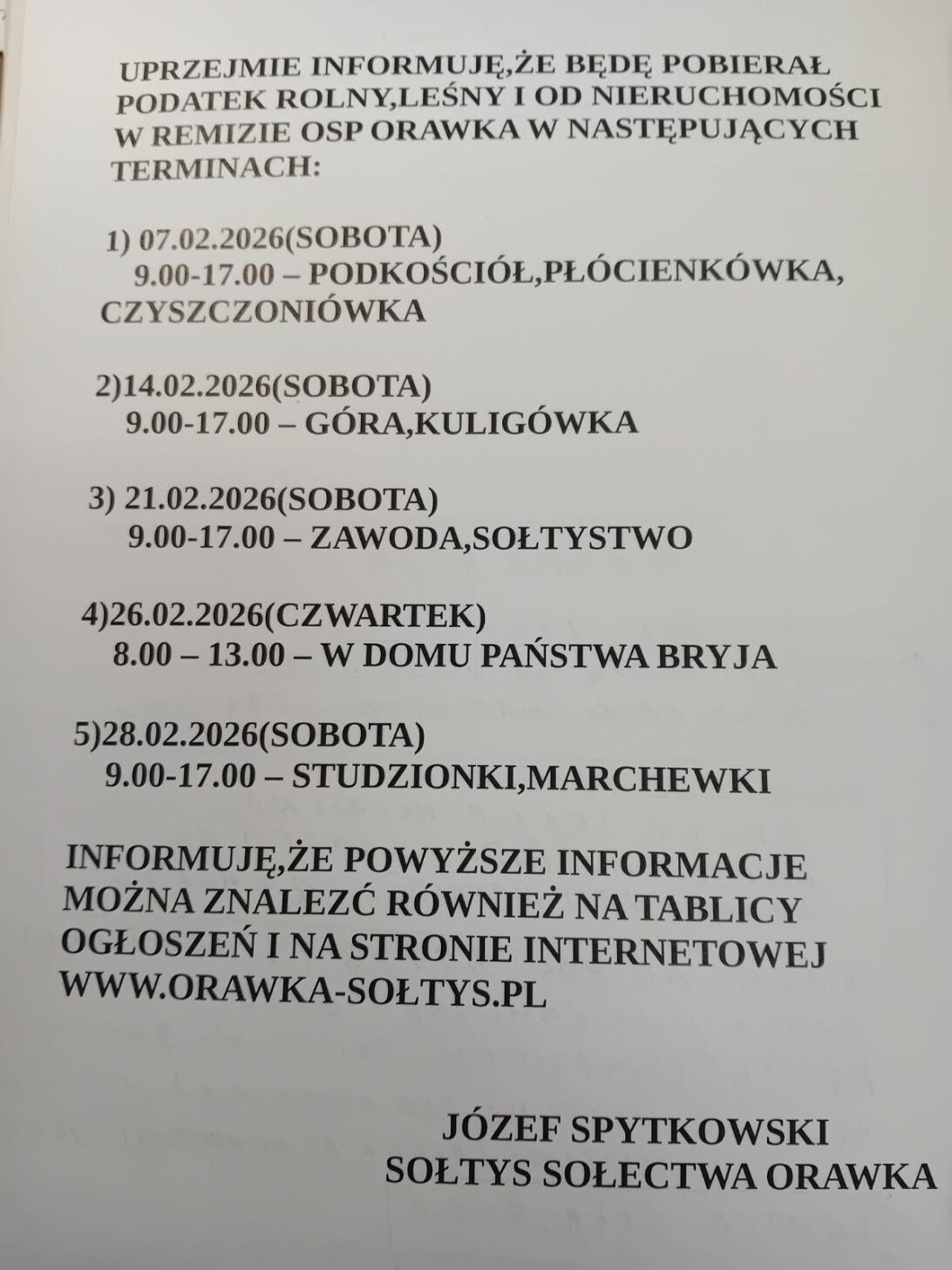 Ogłoszenia sołeckie Orawka
